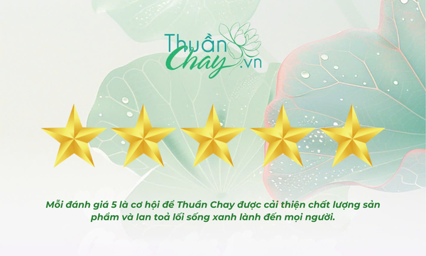 Mỗi đánh giá 5 sao từ bạn là một sự khích lệ lớn lao, giúp Thuần Chay tự tin phát triển nhiều hơn những sản phẩm xanh và lành cho cộng đồng.