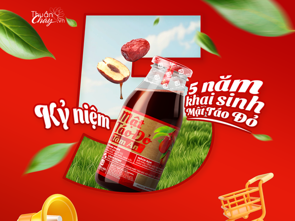 Nhân dịp kỷ niệm 05 năm ra mắt Mật Táo Đỏ Tâm An, Thuần Chay xin gửi lời tri ân sâu sắc đến tất cả khách hàng đã luôn đồng hành và ủng hộ. Để đánh dấu cột mốc đặc biệt này, chúng tôi mang đến chương trình ưu đãi hấp dẫn chỉ có một lần duy nhất.